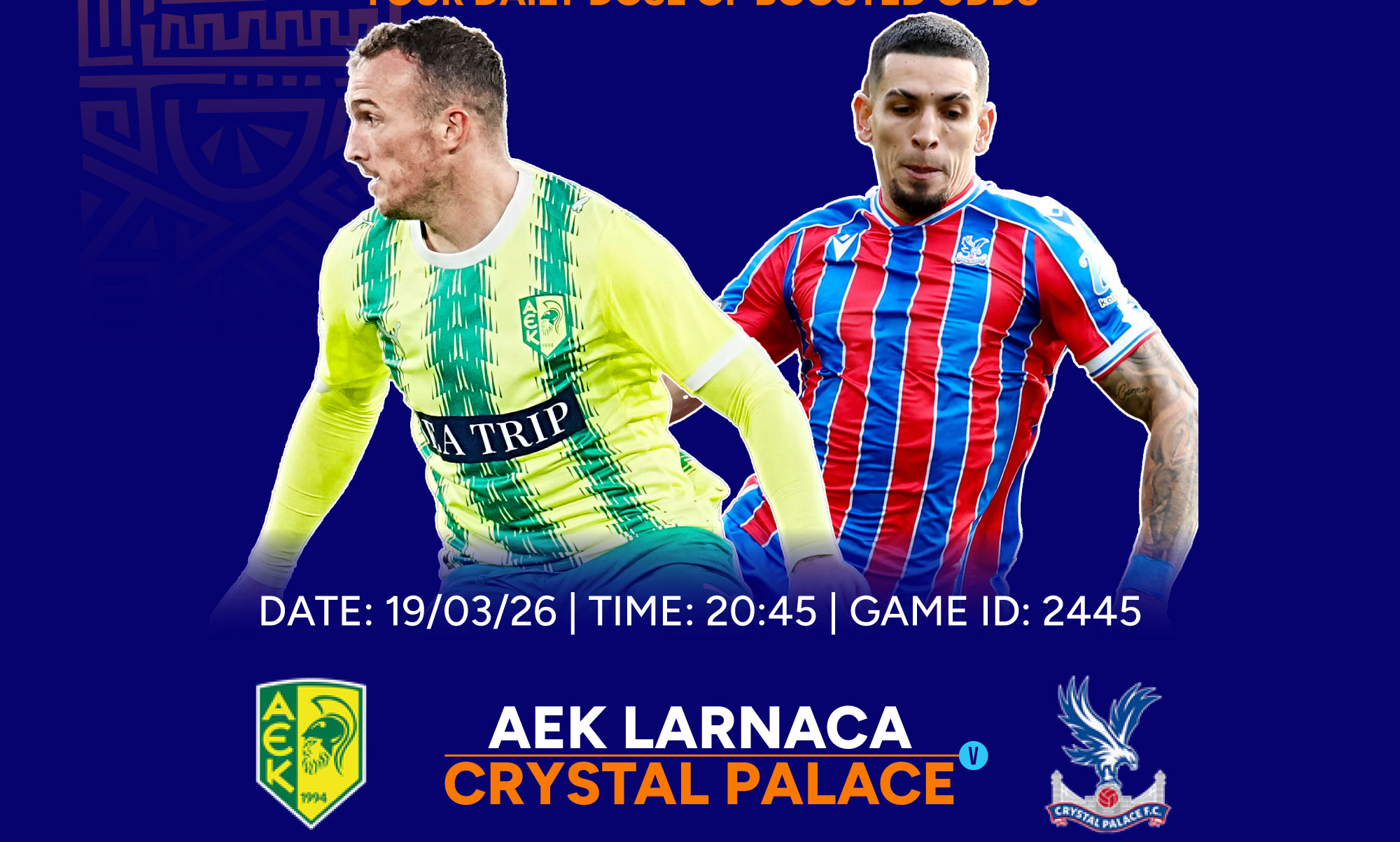 Kick-off is at 8:45 PM (EAT) on Thursday, March 19, 2026, at AEK Arena – George Karapatakis.